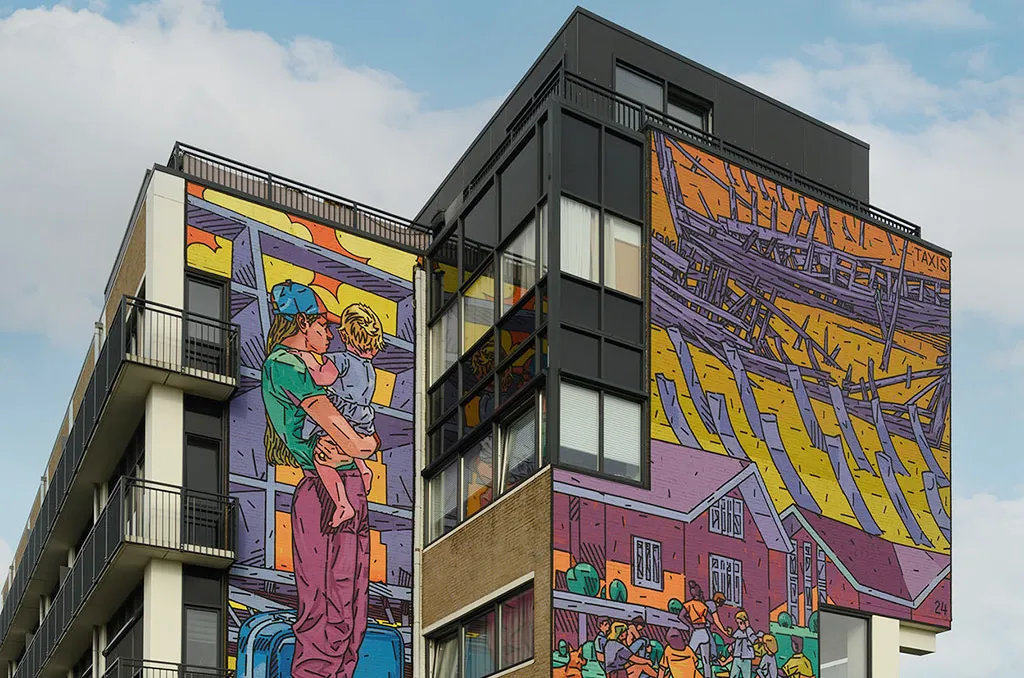Lelystad is een bijzondere toevoeging rijker. Aan de Agoraweg in Lelystad is een indrukwekkende muurschildering over Museum Batavialand onthuld, gemaakt door de gerenommeerde Griekse street artist Dimitrios Trimintzios, beter bekend als Taxis. Deze mural is niet zomaar een kunstwerk; het vertelt het verhaal van de geschiedenis en toekomst van Flevoland, en verbindt zo het verleden met het heden.