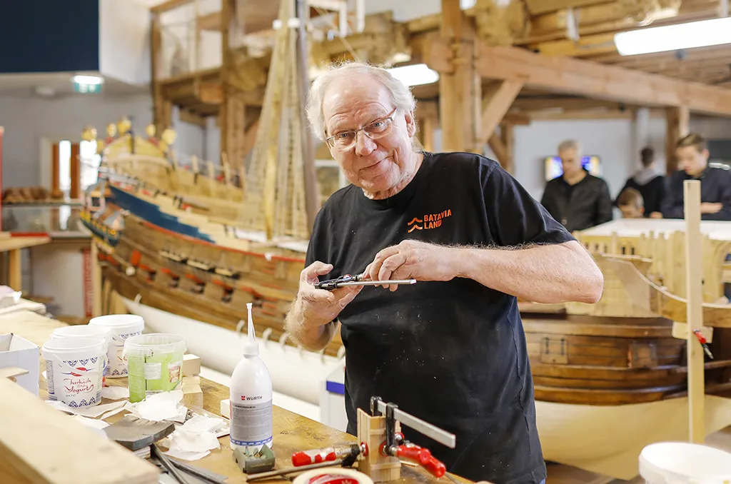 Im Modellbau des Museums Batavialand werden ikonische Schiffe zum Leben erweckt, allerdings in Miniatur. Hier arbeiten Handwerker mit einem Auge fürs Detail an maßstabsgetreuen Modellen, die ein wichtiges Stück Schifffahrtsgeschichte erzählen. Jedes Modell ist ein Kunstwerk für sich, das mit der gleichen Leidenschaft und Präzision hergestellt wird wie die Originalschiffe.